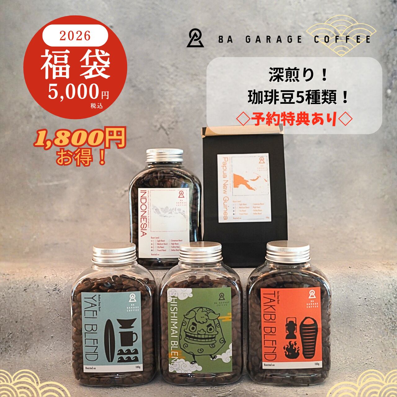 福袋2026【5,000円】浅煎り!自家焙煎豆ボトル100g×5種類